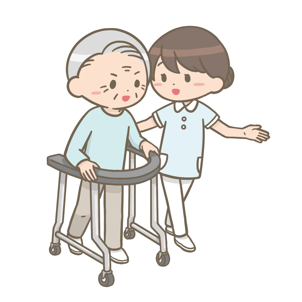 おばあさん 歩行器 学生付き添い認知症の患者さんとの関りでは、患者さんの反応を一生懸命、捉えようと必死に頑張ってくれました。毎回患者さんの反応をみながら、丁寧に関わった成果もあり、最終日にはお風呂に入ることもできました。この認知症患者さんに対して学生たちは「先週もお会いしましたね」といった挨拶は一切せず、患者さんが覚えていないことを考慮しながら関わったことで、信頼関係を築くことができました。